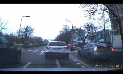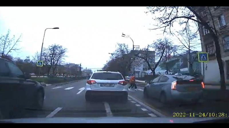 Imagini dezolante, surprinse în capitală. Momentul în care un taximetrist lovește în plin un pieton a fost surprins de o cameră de bord.