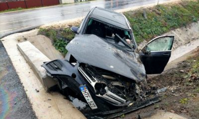 Carosabilul umed face victime. Un șofer nu s-a isprăvit cu ghidajul și a ajuns cu mașina într-un șanț.