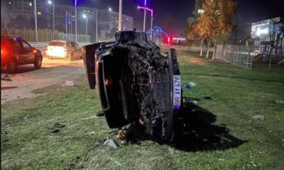 Accident rutier pe o stradă din Bălți. Un Audi s-a ciocnit într-un pilon și s-a inversat. Şoferul care a provocat incidentul a fugit de la faţa...