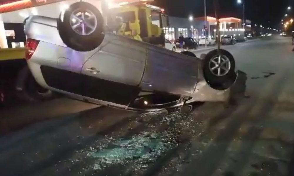 Accident nocturn, în capitală. Un automobil s-a răsturnat după ce s-a tamponat cu un taxi.