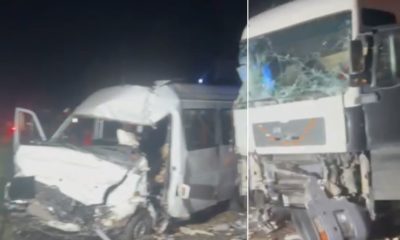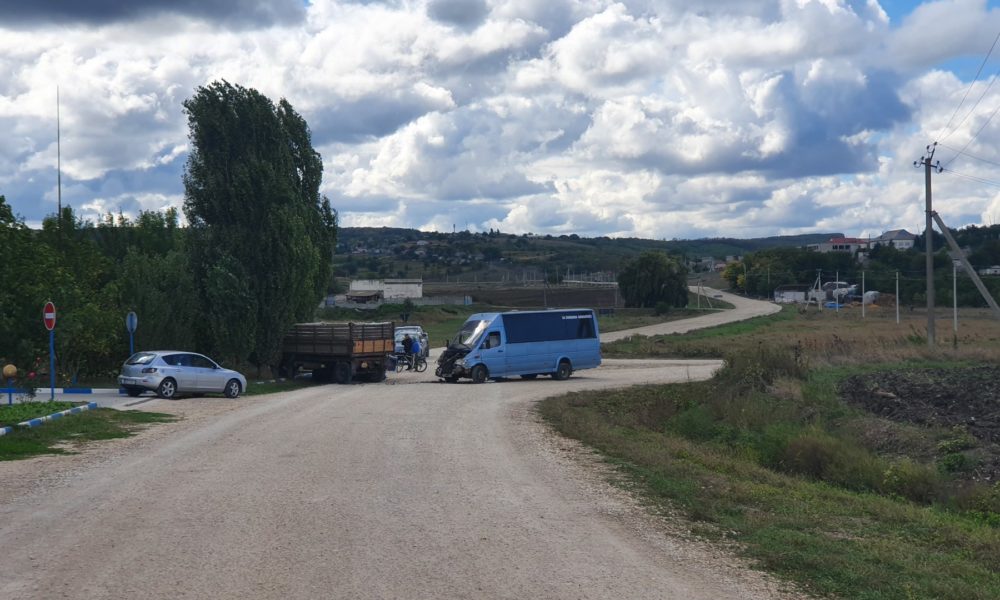 Clipe de panică pentru pasagerii unui microbuz de rută. Vehiculul cu care se deplasau s-a tamponat cu un tractor.