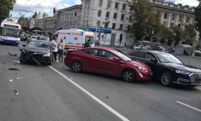 Noi detalii de la accidentul cu trei mașini de pe bd. Ștefan cel Mare și Sfânt. Imagini cu momentul impactului.