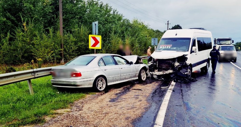 Carambol matinal pe serpentinele de pe traseul Chișinău-Orhei. Un microbuz de rută a intrat în coliziune cu două automobile.