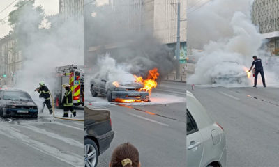 Un automobil a ars ca o torță pe bulevardul Ștefan cel Mare în seara de 23 august.