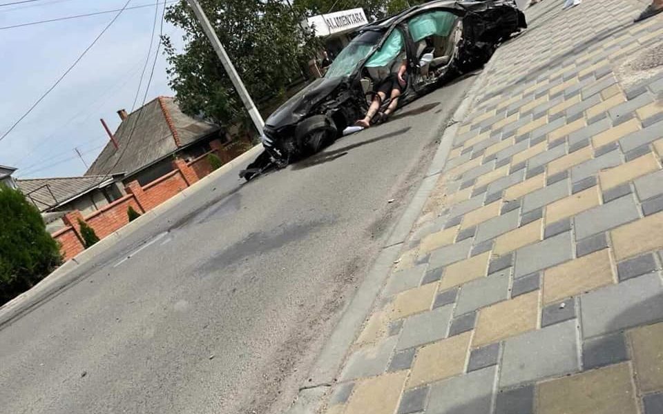 Primele imagini de la accidentul din Durlești, unde o mașină s-a tamponat cu un camion. Automobilul a fost făcut țăndări.
