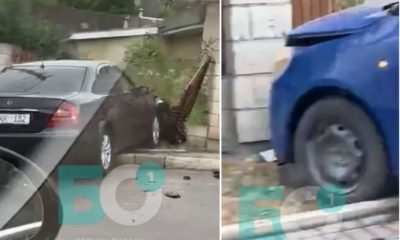 Ghinion pentru doi șoferi, dar și un gospodar din Bălți. Automobilele s-au tamponat, după care ambele au intrat într-un gard.