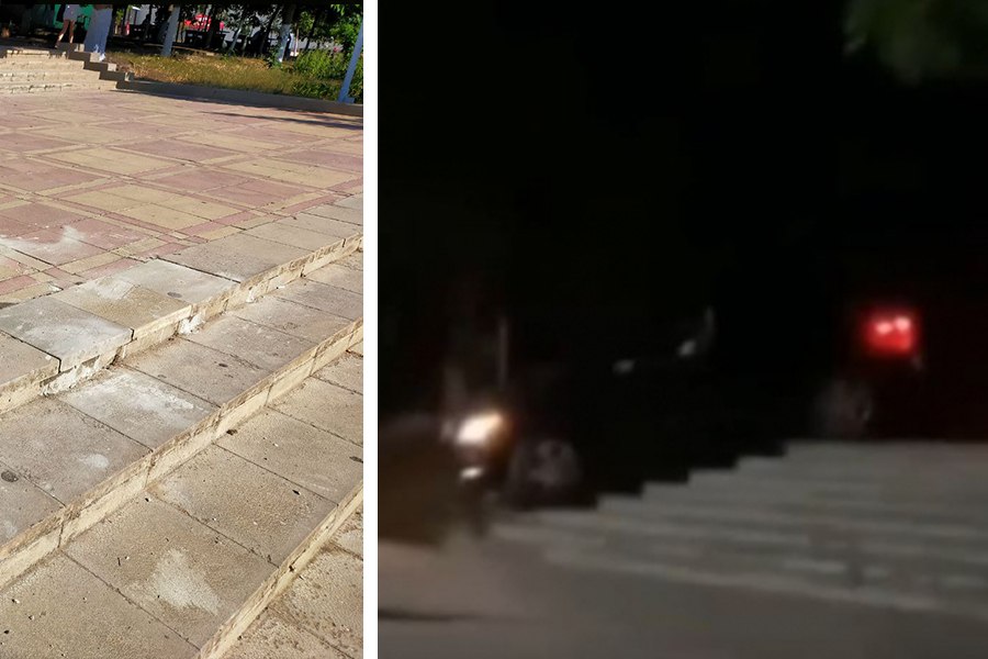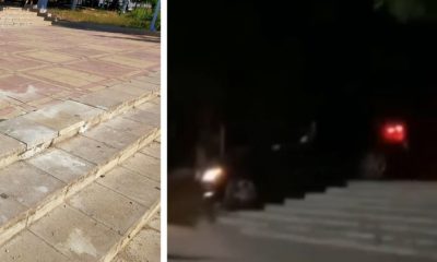 Dezmăț total în sudul țării. Un grup de adolescenți au urcat cu o mașină de teren pe scările unui liceu din orașul Comrat.
