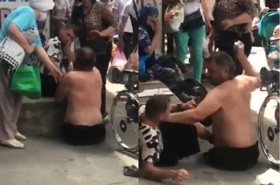 Incident șocant, în capitală. Doi bărbați, unul dintre care cu necesități speciale s-au luat la bătaie, în apropiere de intrarea în Piața Centrală.