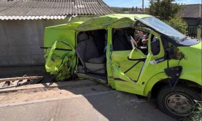 Un camion de model „DAF” s-a tamponat cu un „Ford Transit”, în orașul Hâncești. Microbuzul marfar a ajuns în curtea unei gospodării.