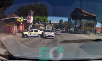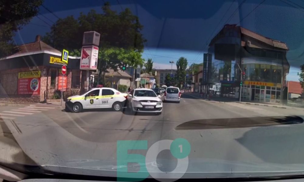 Momentul în care șoferul unei mașini de poliție se izbește într-un alt autoturism a fost surprins pe o stradă din orașul Bălți.
