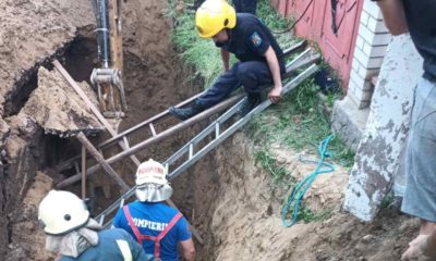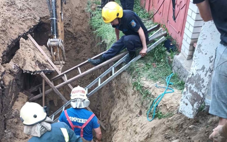 Doi bărbați cu vârstele de 39 și 40 de ani au fost salvați de pompieri, după ce au rămași prinși sub un mal de pământ.