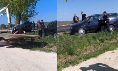 Accident violent, în raionul Fălești. Două mașini s-au tamponat, iar una din ele s-a inversat.