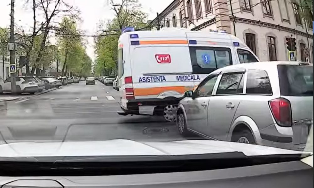 Accident matinal, în capitală. O mașină a fost lovită de o ambulanță, aflată în misiune.