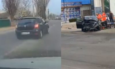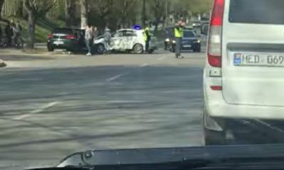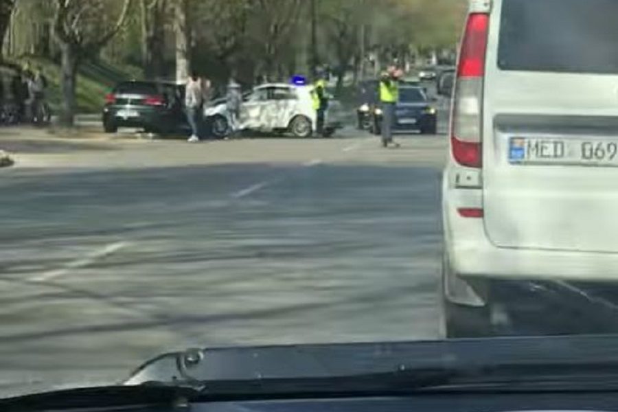 Accident violent, pe o stradă din orașul Bălți. Două mașini s-au tamponat violent.