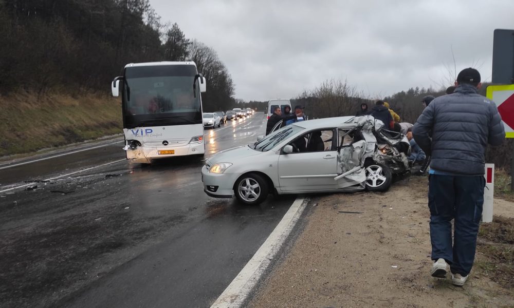 Accident grav, pe traseul Chișinău-Hîncești. Trei persoane au ajuns la spital după ce un autocar s-a tamponat cu o mașină.