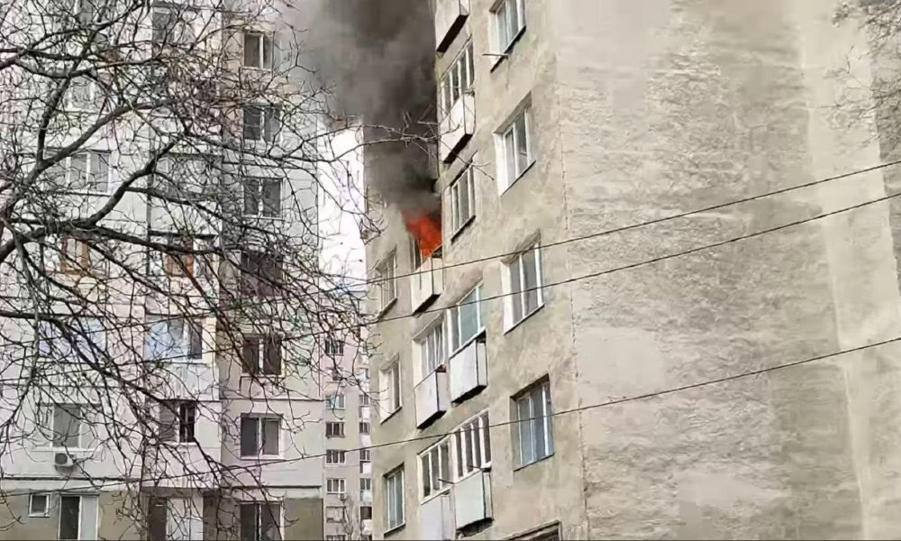 Incendiu într-un bloc locativ din capitală. Un apartament de la etajul șase a luat foc.