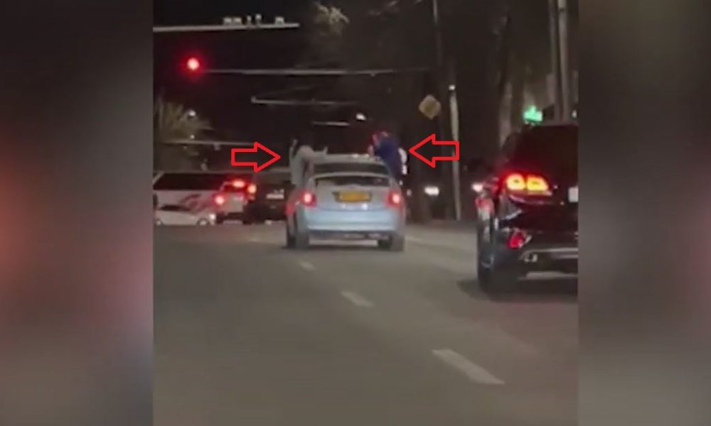 Distracții periculoase, în capitală. O tânără și un tânăr au fost surprinși cum au ieșit pe jumătate prin geamurile unui taxi, se țineau de mână, dansau...
