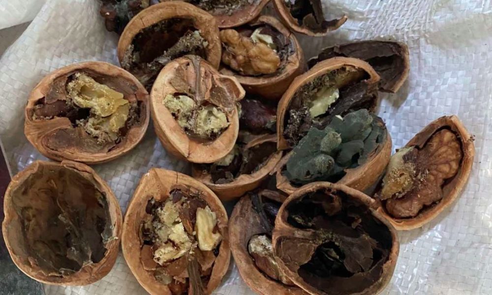 Peste 60 de tone de nuci în coajă putrezite riscau să ajungă în Republica Moldova.