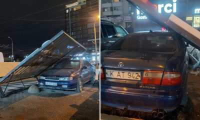 Un șofer și-a parcat mașina lângă un stand pe care scria „merci” și s-a trezit cu acesta peste mașină. Incidentul a avut loc pe strada Ismail...