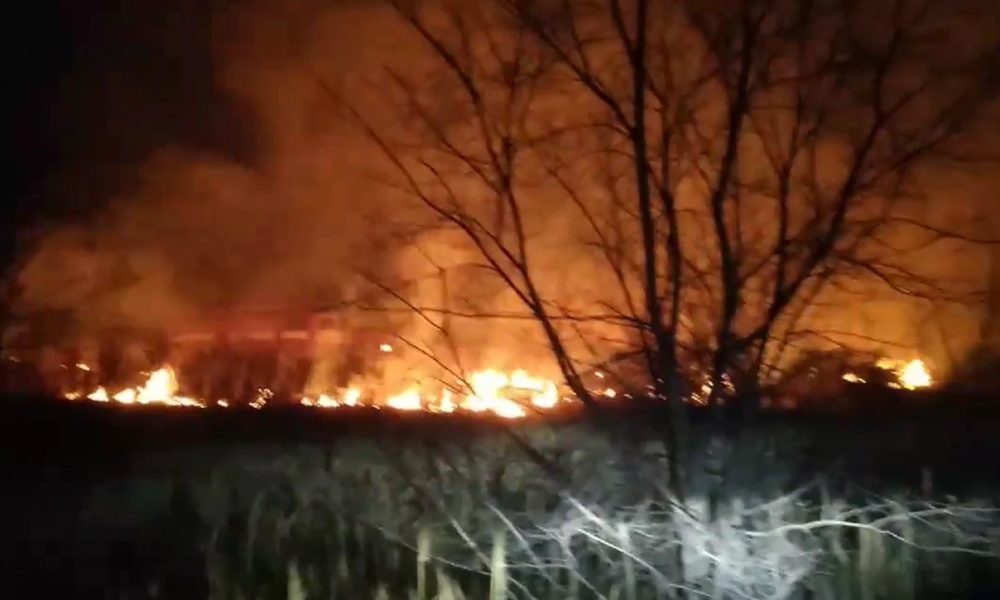 Incendiu devastator, în apropierea orășelului Sîngera. Un câmp cu vegetație uscată a fost cuprins de flăcări.