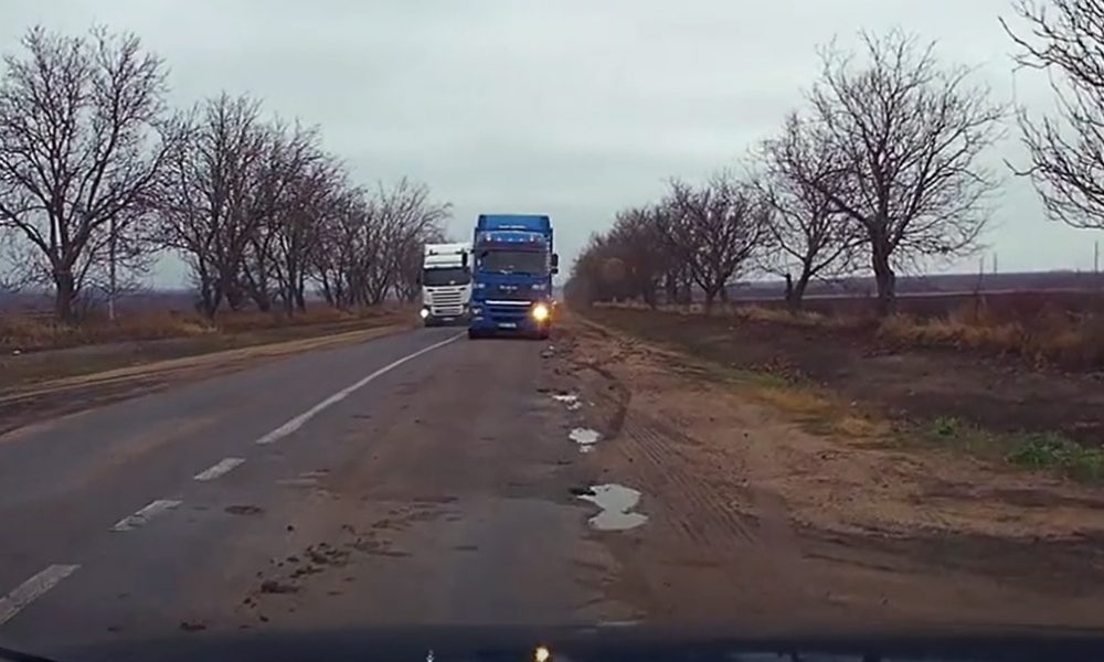 Întrecere cu autocamioane surprinse pe traseul Chișinău-Criuleni.