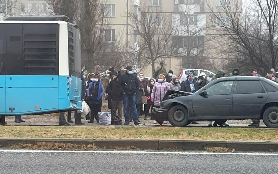 Clipe de panică pentru pasagerii unui autobuz de rută din capitală. Vehiculul în care se aflau a fost tamponat puternic de un automobil.