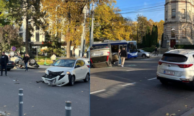 Un accident rutier a avut loc pe str. Al. Mateevici din Chișinău, unde un automobil Honda s-a răsturnat în urma unei coliziuni cu un Lancia.