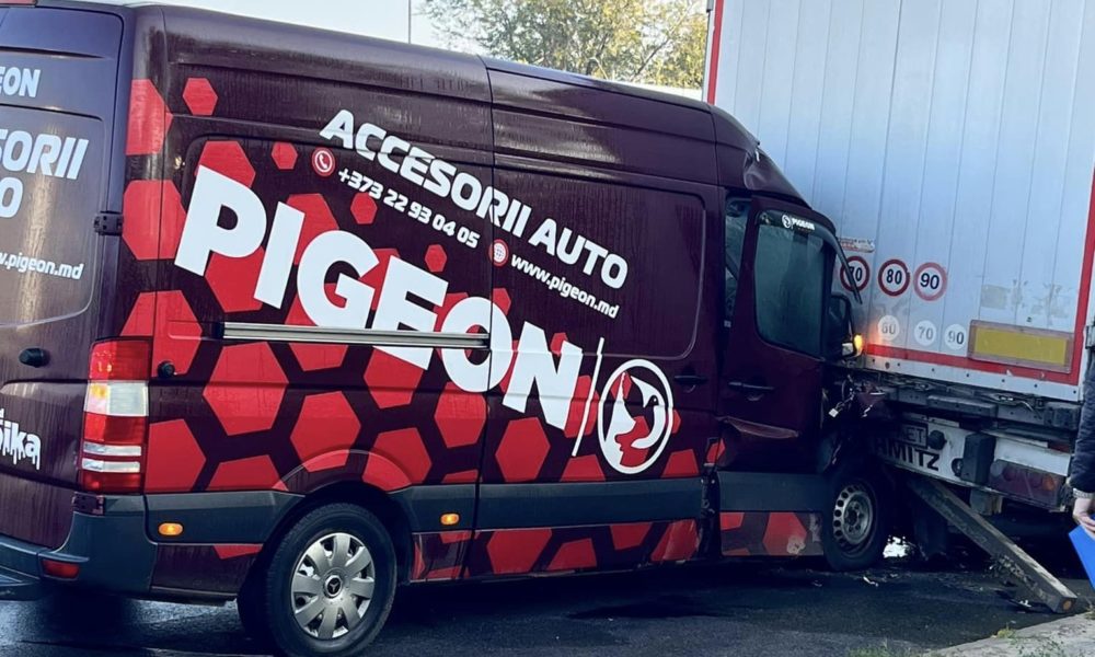 Accident matinal, în capitală. Un șofer a rămas blocat între fiarele microbuzului pe care-l conducea după ce s-a izbit în remorca unui camion.
