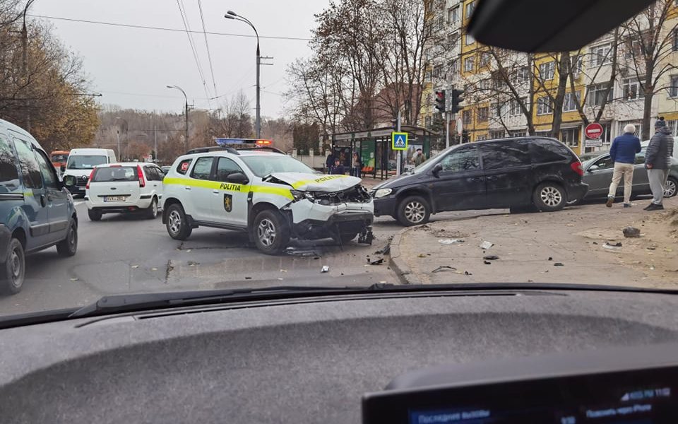 Mașina poliției, implicată în accident. Totul a avut loc în prima jumătate a zilei de 19 noiembrie, în jurul orei 10.55, la intersecția străzilor Eugen Coca...