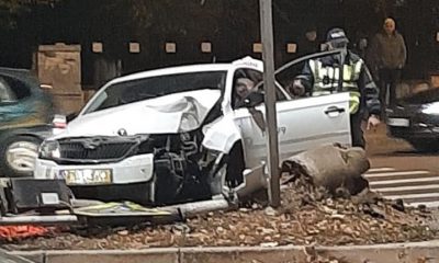 A pus semaforul la pământ. Un taximetrist de 37 de ani nu s-a isprăvit cu ghidajul într-un sens giratoriu și a provocat o coliziune violentă.