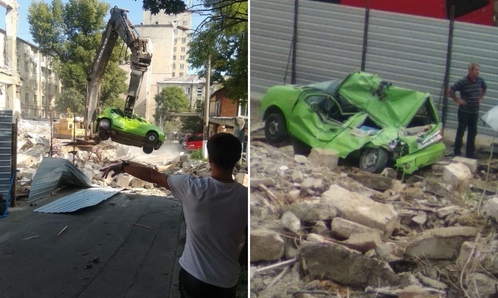 Ghinion pe capul unei șoferițe din capitală. Peretele unui restaurant, aflat la etapa de demolare s-a prăbușit exact peste mașina ei.
