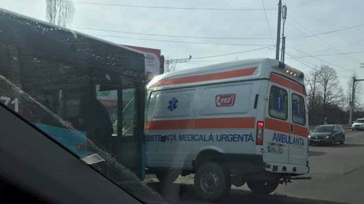 Авария произошла сегодня в секторе Ботаника. Автобус столкнулся с машиной скорой помощи на пересечении улицы Валя Кручий и бул. Дачия.