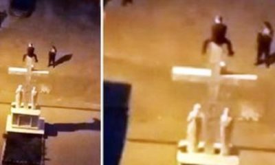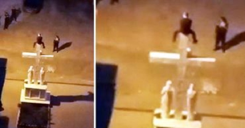 На Чеканах молодой человек взобрался на распятие, установленное перед церковью, и угрожал оттуда спрыгнуть.