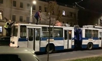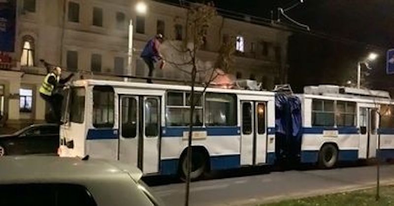 Этим вечером на проспекте Штефана чел Маре в столице загорелся троллейбус.