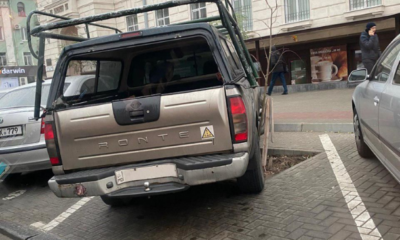 На одной из улиц Кишинева водитель припарковал автомобиль, наехав на молодое деревце.