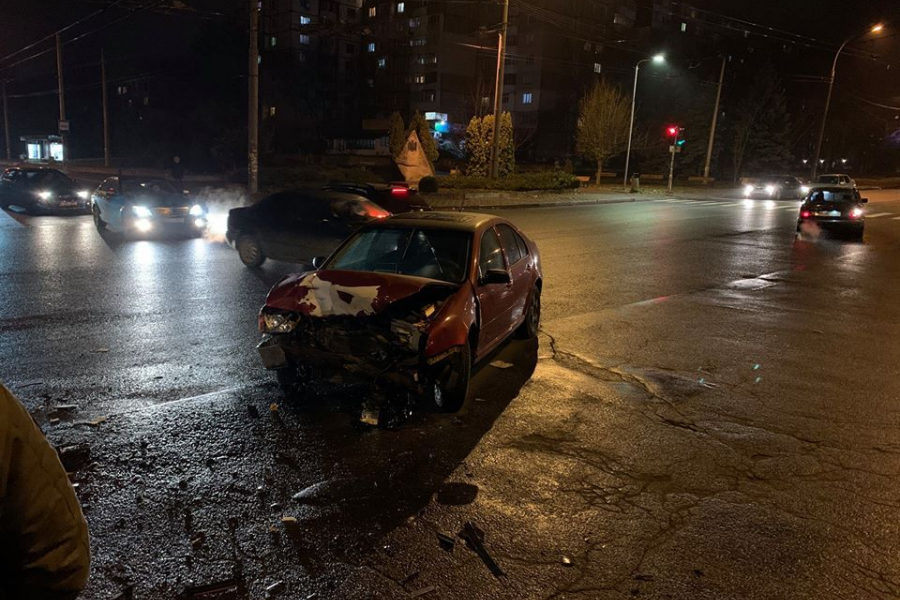 На оживлённом перекрёстке в центре столицы произошла авария с участием трёх автомобилей.