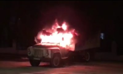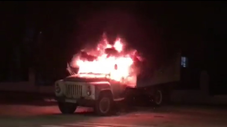 Прошлой ночью в центре столицы загорелся грузовой автомобиль.