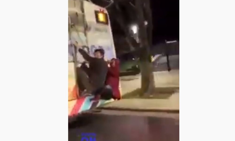 Двое детей забрались на лестницу троллейбуса и катались таким образом по городу.