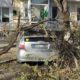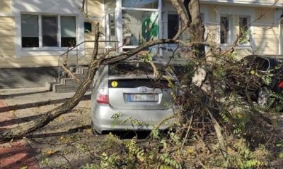 Ветка упавшего дерева рухнула на припаркованный автомобиль.