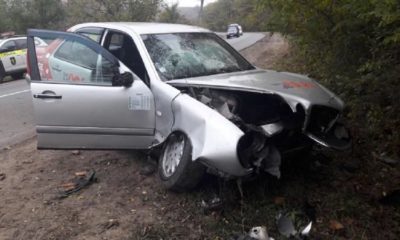 Три человека в тяжёлом состоянии были госпитализированы после того, как такси, в салоне которого они находились, съехало в кювет и перевернулось.