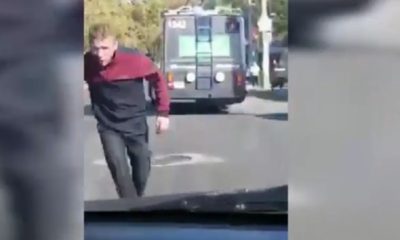 В Кишиневе неадекват пытался ворваться в троллейбус.