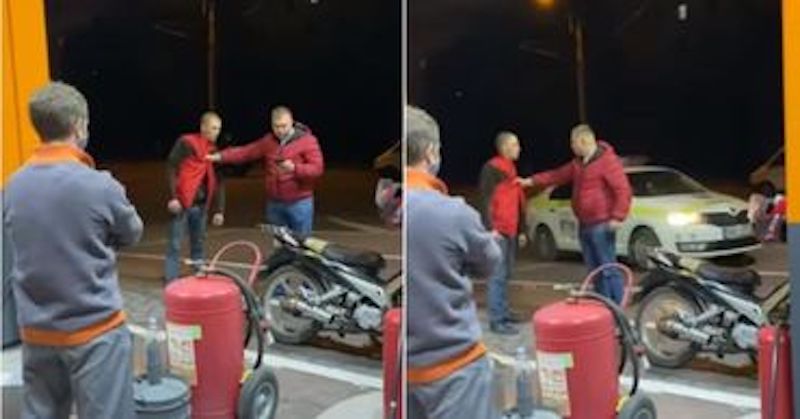 Один из водителей остановил пьяного мотоциклиста и не дал ему уехать с заправки.