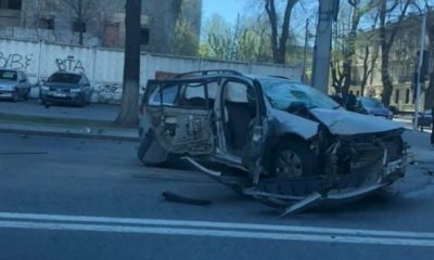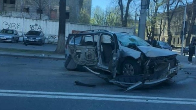 Автомобиль превратился в груду металла в результате цепной аварии, произошедшей сегодня во второй половине дня на пересечении улиц Штефан чел Маре и Сергей Лазо.
