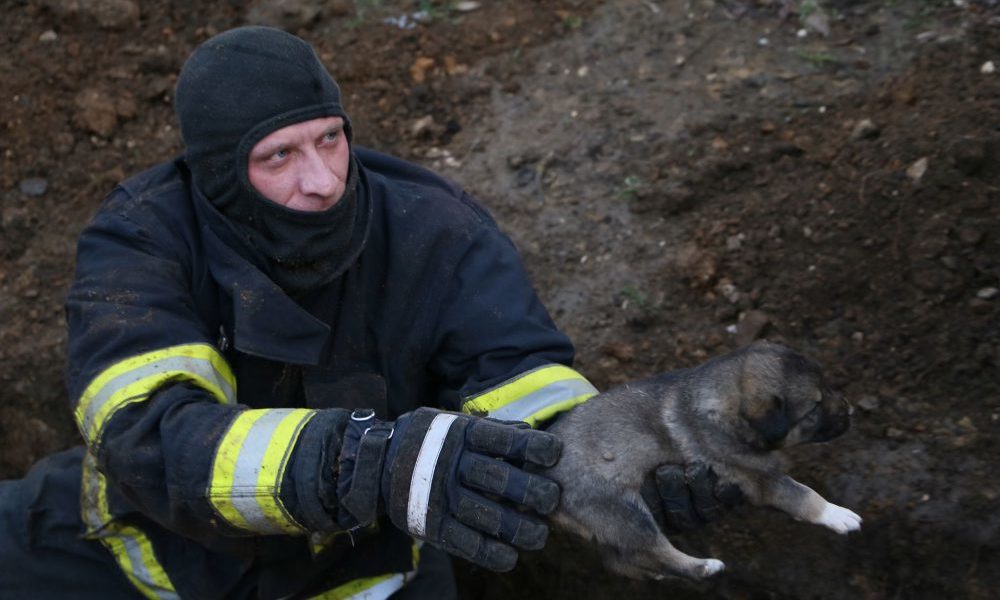 Необычную операцию провели сотрудники ГИЧС, извлекшие из земляной ямы семерых щенков.