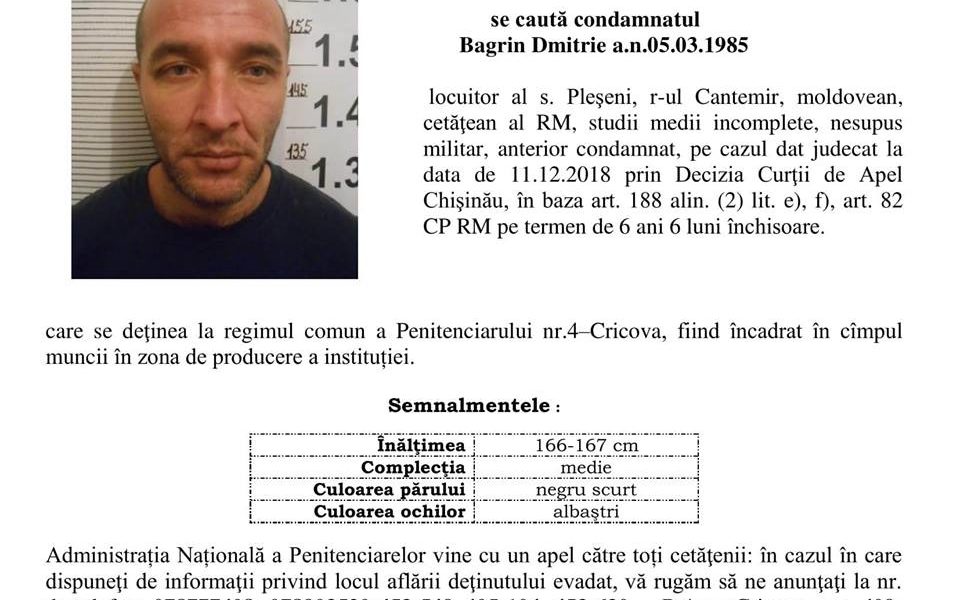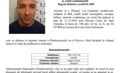 Un deținut a evadat de la penitenciarul din Cricova. Acum poliția încearcă să-i dea de urmă. Potrivit ANP, este vorba despre un bărbat de 34 de...