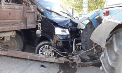 Accident la Peresecina. Un tractor s-a tamponat cu o mașină.