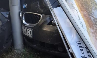 Accident grav la Telecentru. Un șofer a intrat cu mașina într-un panou publicitar.