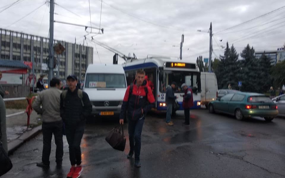Accident în sectorul Buiucani. Un microbuz de rută și un troleibuz nu au încăput într-un sens giratoriu.
