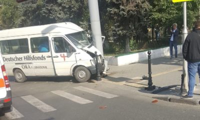 Șoferul unui microbuz a pierdut controlul volanului și a intrat cu vehiculul său direct într-un pilon din centrul capitalei.
