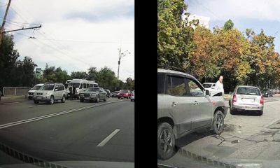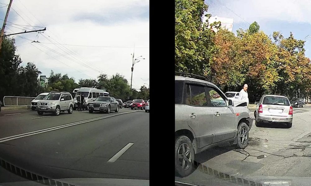 Accident la cercul de pe Iurie Gagarin, intersecție cu bulevardul Negruzzi, Cantemir și Albișoara. Două mașini, dintre care un taxi, nu au încăput pe benzile sensului...
